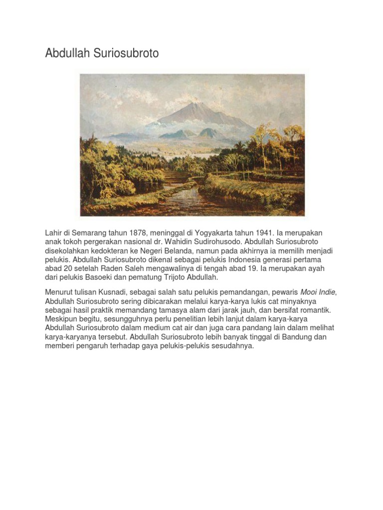 Abdullah Suriosubroto Pelukis Pertama Indonesia Abad Ke 20 Halaman All Kompas Com